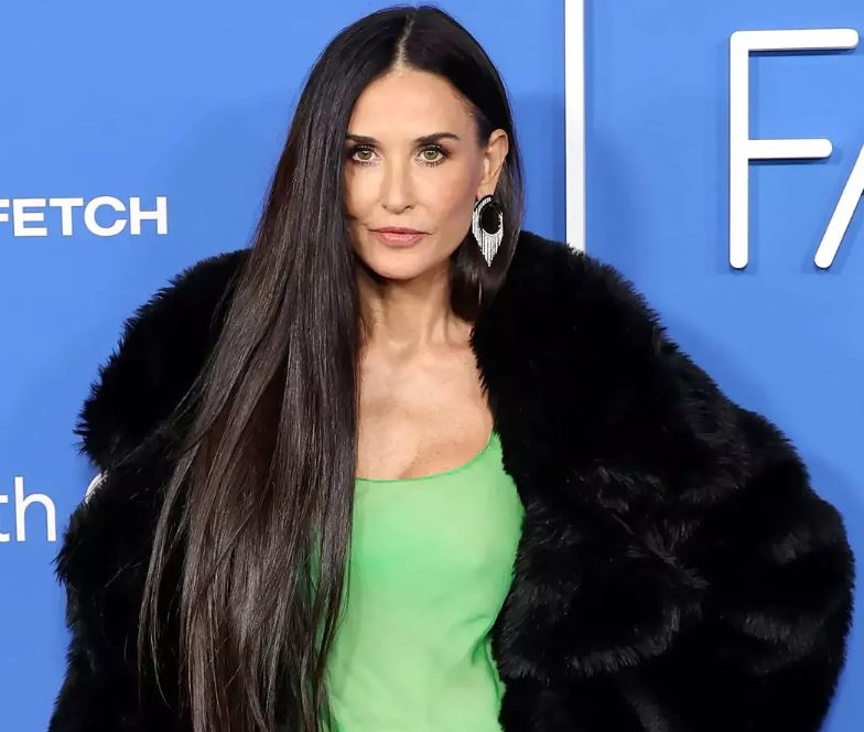 Demi Moore and her daughter Scout Willis made a traditional pairing on the red carpet, choosing rich, bright colors: Scout in a hot pink evening dress, and Demi in an apple green slip dress. The 60-year-old star added extra glamor to the look by draping a voluminous fur coat over her shoulders and opting for pointed-toe black pumps, a style that has made a comeback on the fall/winter 2023 runways.